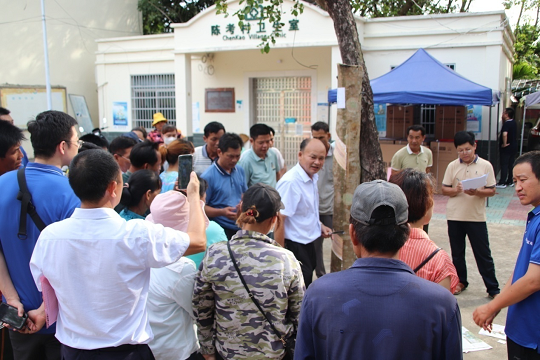 圖為保國分公司割膠技術(shù)員在樂東縣陳考村委會對膠農(nóng)割膠技術(shù)現(xiàn)場測試。