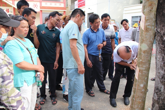 為了檢驗膠農(nóng)一天來的割膠技術(shù)成績和收獲, 當天下午, 還對膠農(nóng)中線、低線和陰線割膠技術(shù)進行實操測試。